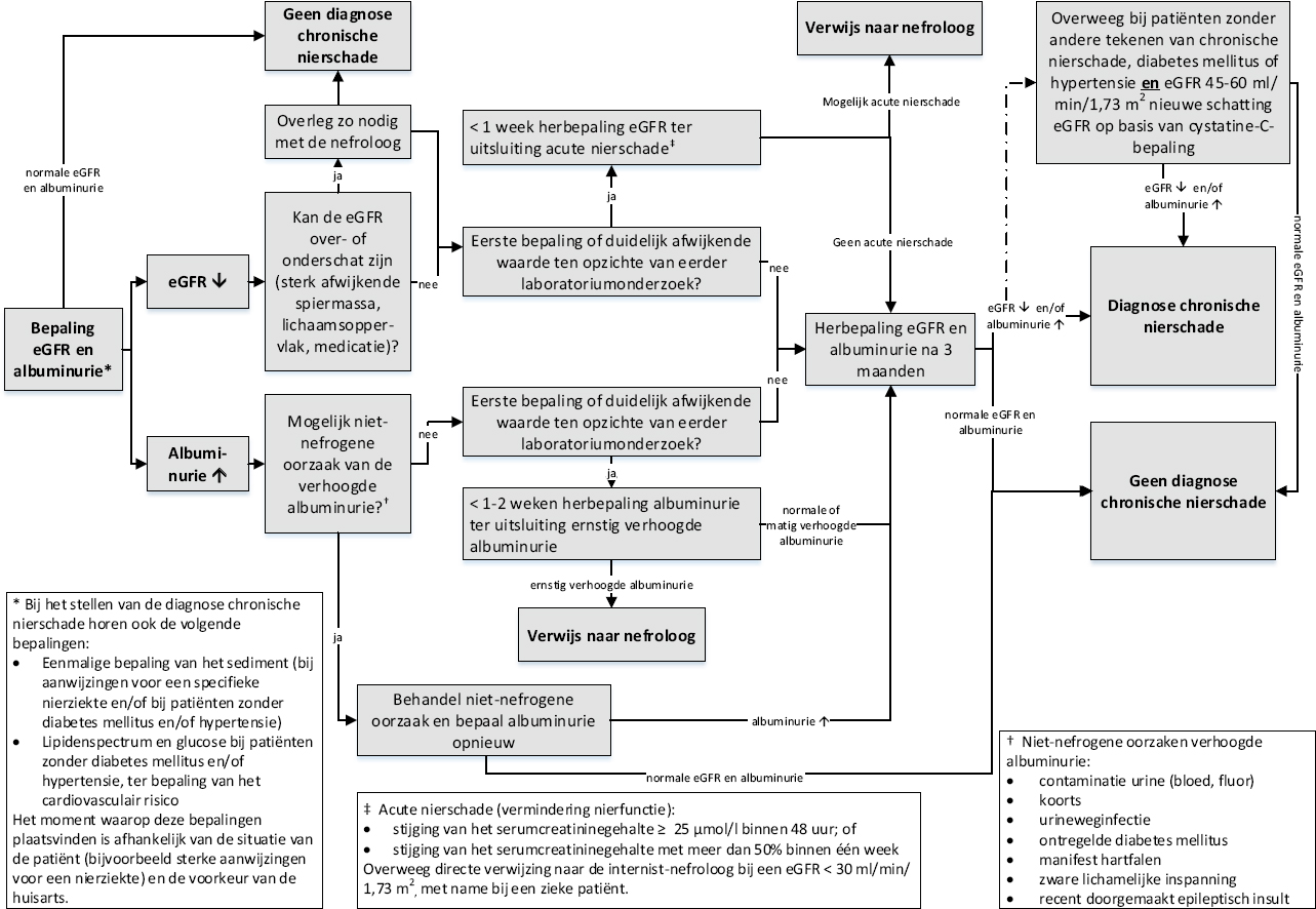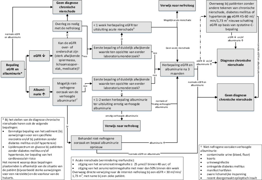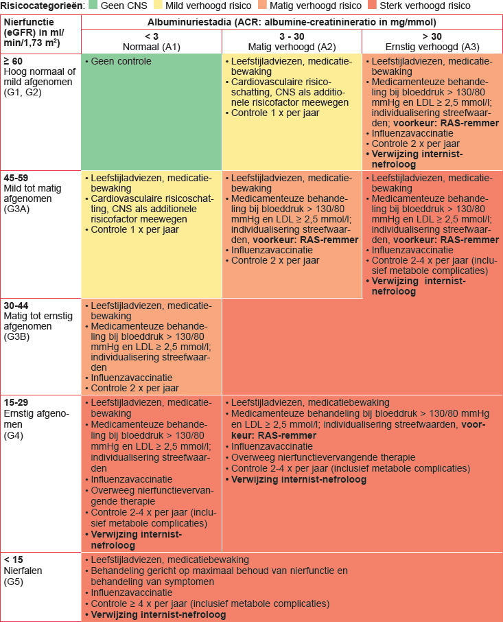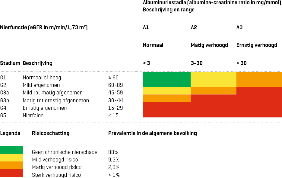| Verlaagde nierfunctie en/of | eGFR < 60 ml/min/1,73 m2 |